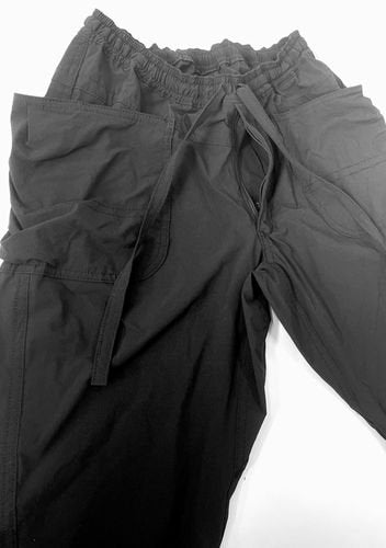 - These pants have a tapered sarouel-style silhouette and large side pockets.