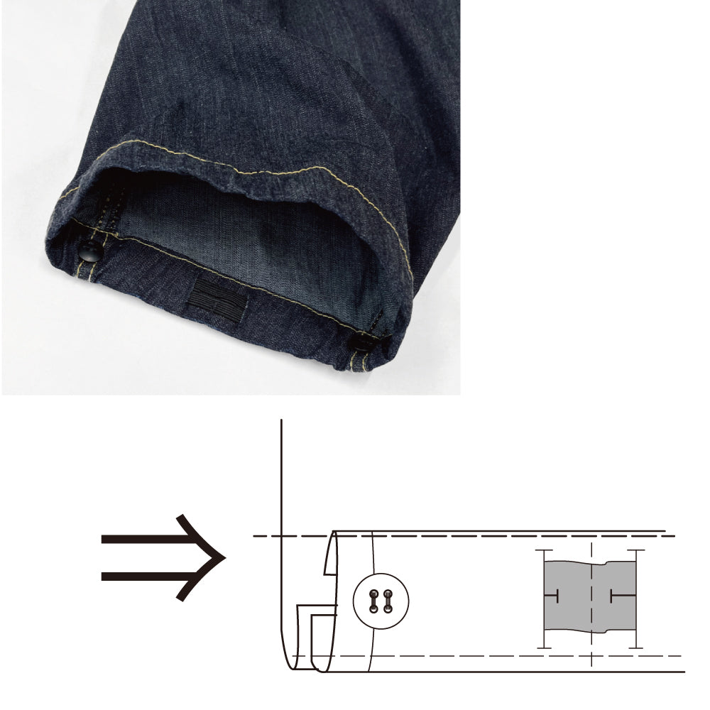・【ゴム通し】の加工は裾上げ寸法より、さらに短く仕上がる印象になります。