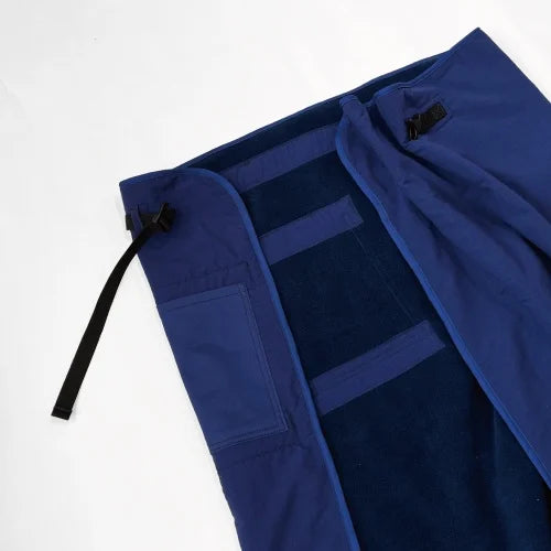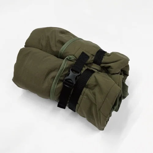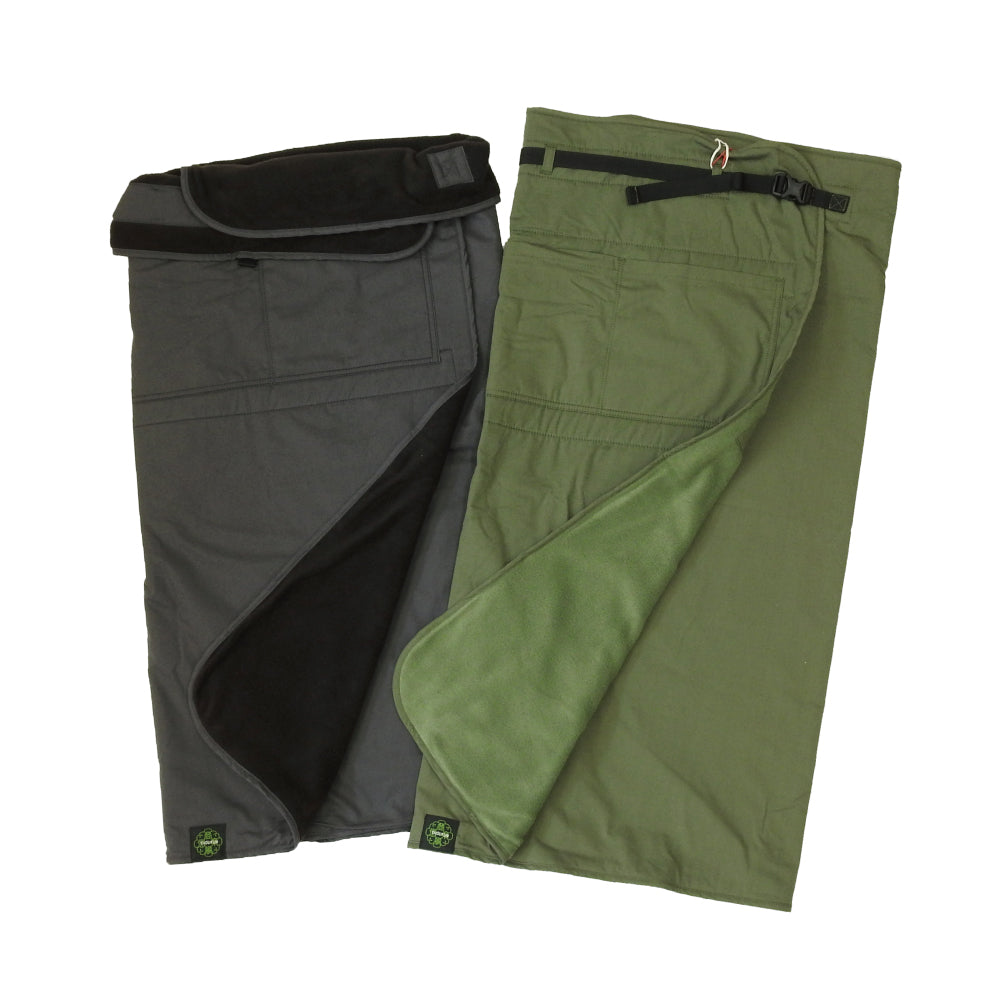 ・岩場シーズンのレスト中の防寒に、脱ぎ着しやすいバックル仕様のブランケット。