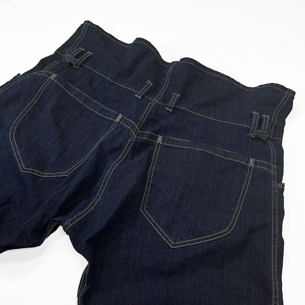 個性的なデザインながら筒部分はすっきりめ、素材はデニムでチャレンジしやすい1本。