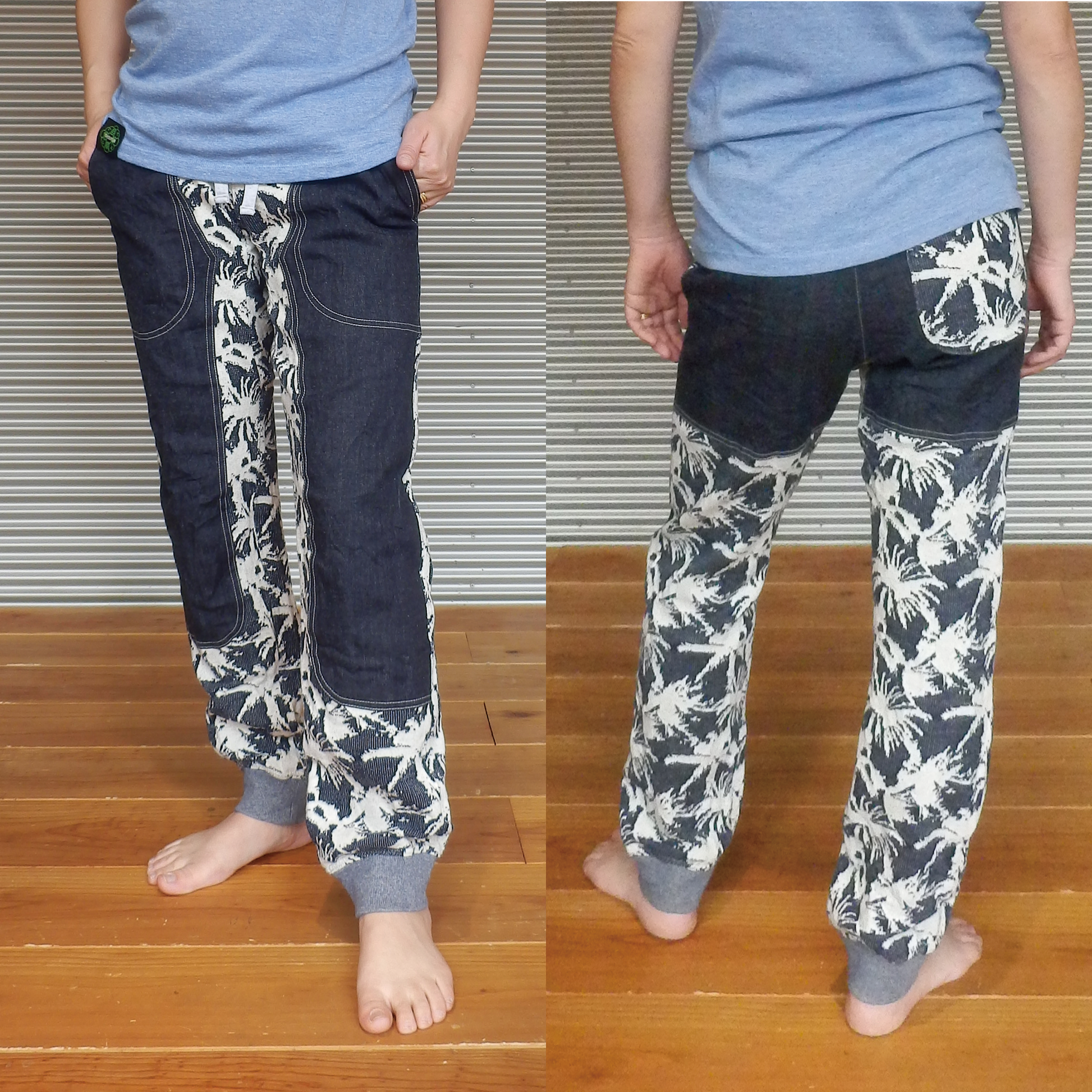 ・ヤシの葉柄のジャガード生地+8ozストレッチデニム使用。