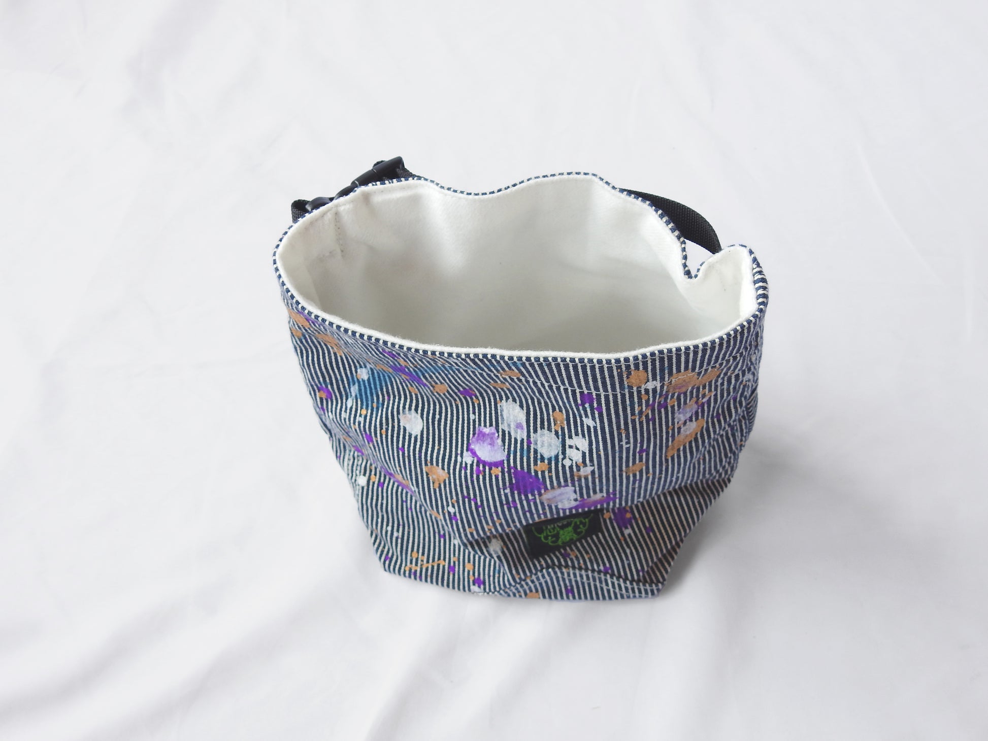 底の生地を二重にし、底に重心をおくことでチョークバッグが倒れることを防ぎます。物を入れることでより安定します。