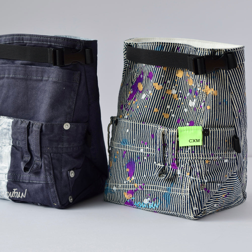 CXMのチョークバッグやバッグは、胴と底が繋がった パターンを採用しています。