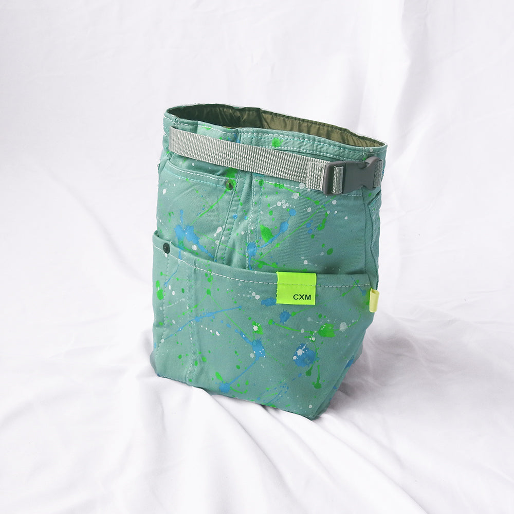 CXMのチョークバッグやバッグは、胴と底が繋がった パターンを採用しています。